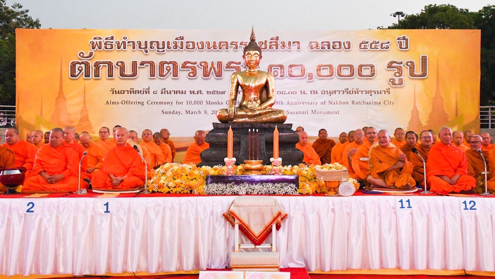 กองทัพน้อยที่ 2 ร่วมพิธีทำบุญเมืองนครราชสีมา ฉลองครบรอบ 558 ปี ตักบาตรพระสงฆ์ 10,000 รูป เมื่อวันที่ 8 มีนาคม 2569 พลโท ปิยะพณห์ ฐิตวัฒนานนท์ แม่ทัพน้อยที่ 2 และคุณชนัญธวีธ์ ฐิตวัฒนานนท์ ประธานสมาคมแม่บ้านทหารบก สาขา กองทัพน้อยที่ 2 ร่วมพิธีทำบุญเมืองนครราชสีมา ฉลองครบรอบ 558 ปี ตักบาตรพระสงฆ์จำนวน 10,000 รูป เพื่อน้อมถวายเป็นพุทธบูชา ถวายเป็นพระราชกุศลแด่ สมเด็จพระบรมไตรโลกนาถ สมเด็จพระนารายณ์มหาราช ผู้สถาปนาเมืองนครราชสีมา และอุทิศส่วนกุศลแด่ท่านท้าวสุรนารี ณ บริเวณอนุสาวรีย์ท้าวสุรนารี อำเภอเมืองฯ จังหวัดนครราชสีมา โดยมี นายวิจิตร กิจวิรัตน์ รองผู้ว่าราชการจังหวัดนครราชสีมา (1) เป็นประธานในพิธีฯ