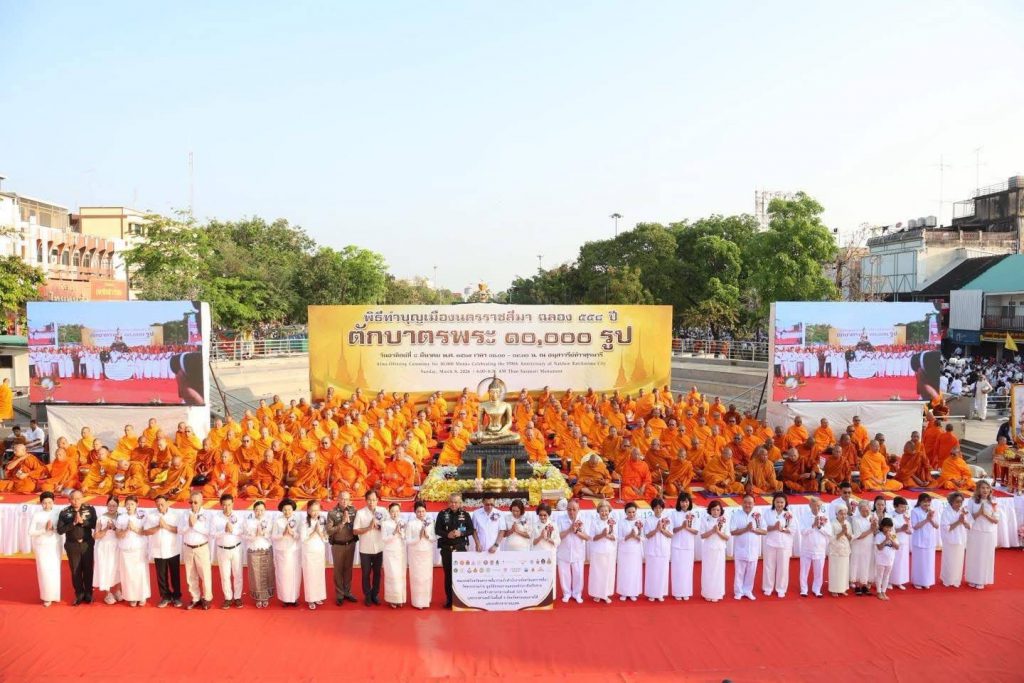 กองทัพน้อยที่ 2 ร่วมพิธีทำบุญเมืองนครราชสีมา ฉลองครบรอบ 558 ปี ตักบาตรพระสงฆ์ 10,000 รูป