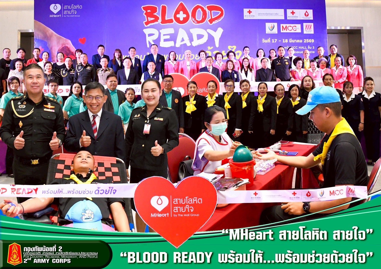 ร่วมเป็นเกียรติในพิธีเปิดงาน และสนับสนุนบุคลากรหน่วยร่วมบริจาคโลหิต โครงการ “MHeart สายโลหิต สายใจ “BLOOD READY พร้อมให้…พร้อมช่วยด้วยใจ” 17 มีนาคม 2569 พันเอก คณิต ชิตทรงสวัสดิ์ รองผู้อำนวยการกองข่าว กองทัพน้อยที่ 2 ร่วมเป็นเกียรติในพิธีเปิดงานบริจาคโลหิต ภายใต้ โครงการ “MHeart สายโลหิต สายใจ“ “BLOOD READY พร้อมให้…พร้อมช่วยด้วยใจ” ร่วมกับภาคบริการโลหิตแห่งชาติที่ 5 จังหวัดนครราชสีมา สภากาชาดไทย , เหล่ากาชาดจังหวัดและ โรงพยาบาลมหาราชนครราชสีมา ภายในงานมีการเปิดรับบริจาคโลหิต และอวัยวะ เพื่อช่วยบรรเทาวิกฤตการขาดแคลนโลหิตในช่วงเทศกาล และเป็นการร่วมกันส่งต่อโอกาสในการรักษาชีวิตแก่ผู้ป่วยที่ต้องการโลหิตอย่างเร่งด่วน ในส่วนของ กองทัพน้อยที่ 2 มีกำลังพลบริจาคโลหิต จำนวน 3 นาย ได้โลหิตรวม 1350 ซีซี ณ วาไรตี้ฮอลล์…